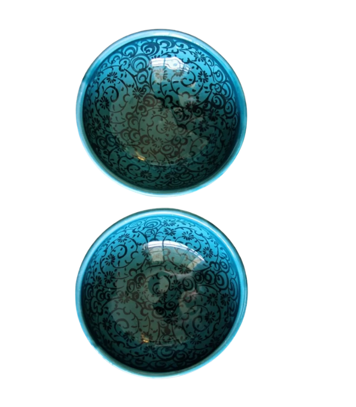 Moroccan Ceramic Bowls, Jade Green Traditional Design, Set of 4