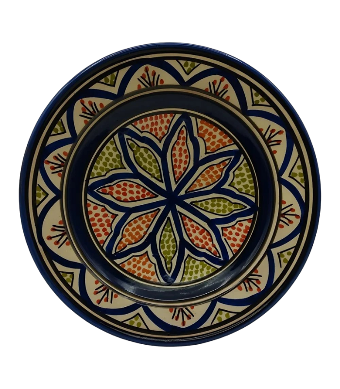 Moroccan Ceramic Plate, Hand-Painted Floral Design, 22.5 cm