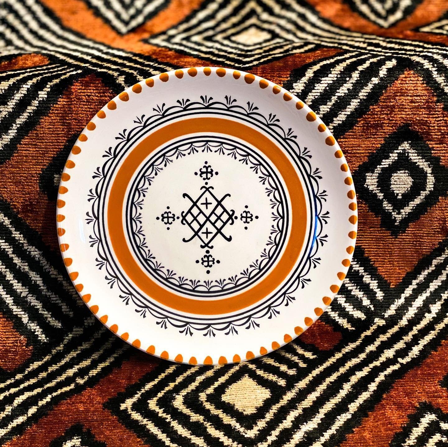 Handcrafted plates featuring Amazigh-inspired geometric patterns. Designed for everyday use while maintaining cultural authenticity.