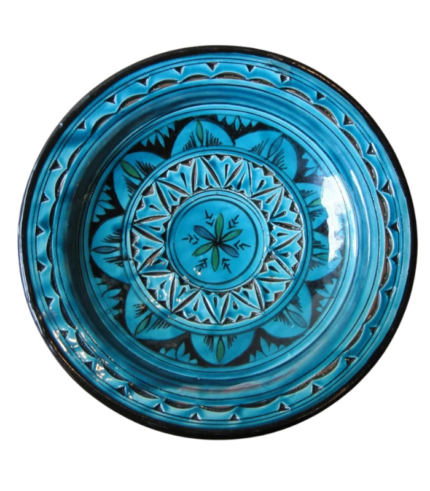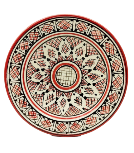 Moroccan Ceramic Plate, Hand-Painted Geometric Design, 22.5 cm