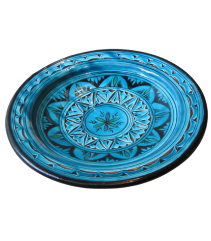 Moroccan Pottery Plate, Hand-Painted Blue Pattern, 26.7 cm