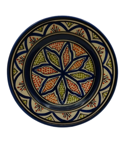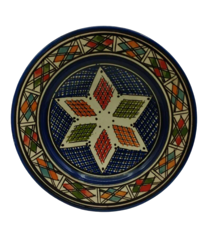 Moroccan Ceramic Plate, Hand-Painted Geometric Star Pattern, 22.5 cm
