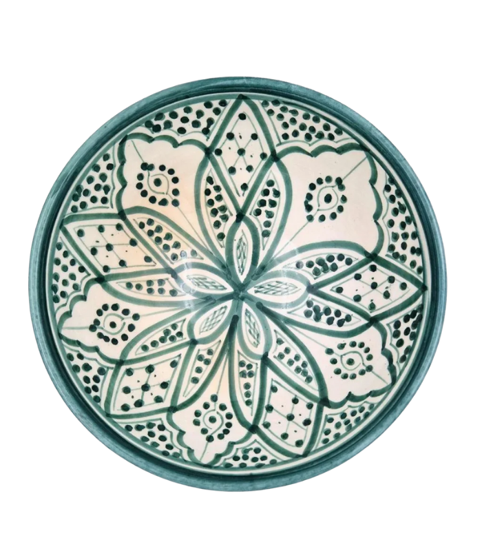 Moroccan Ceramic Bowl, Hand-Painted Traditional Geometric Design